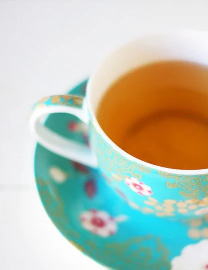 Chamomile tea soothes mucous membranes and contains a bitter principle to aid with digestion.